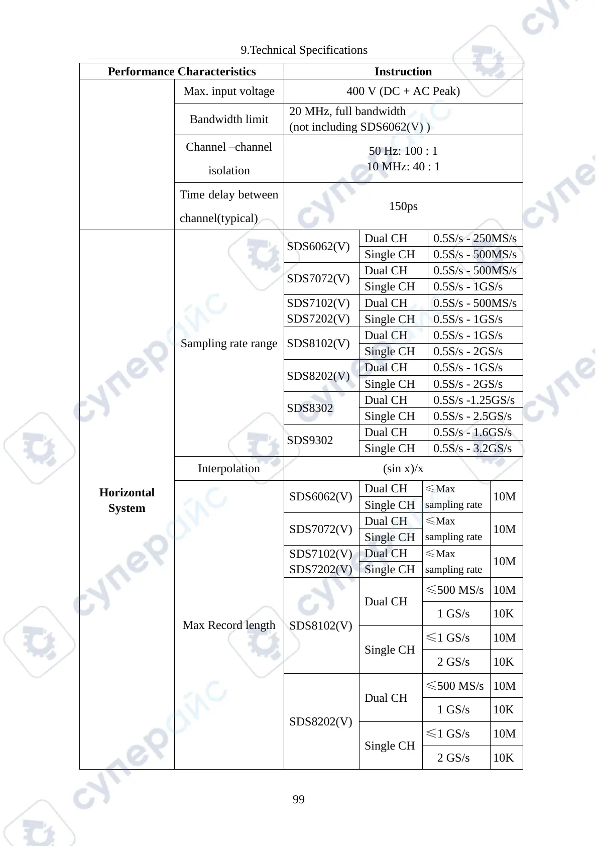 9.Technical Specifications