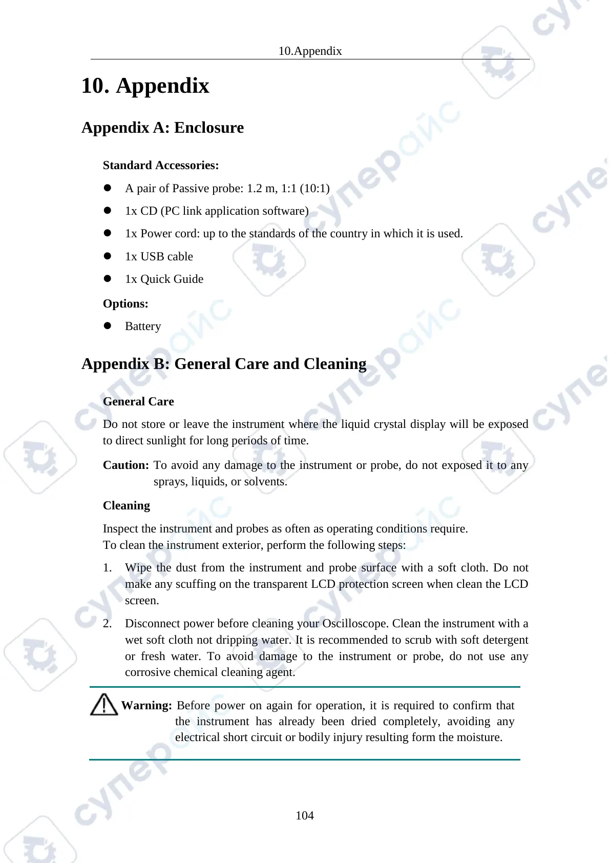 2. Disconnect power before cleaning your Oscilloscope. Clean the instrument with a