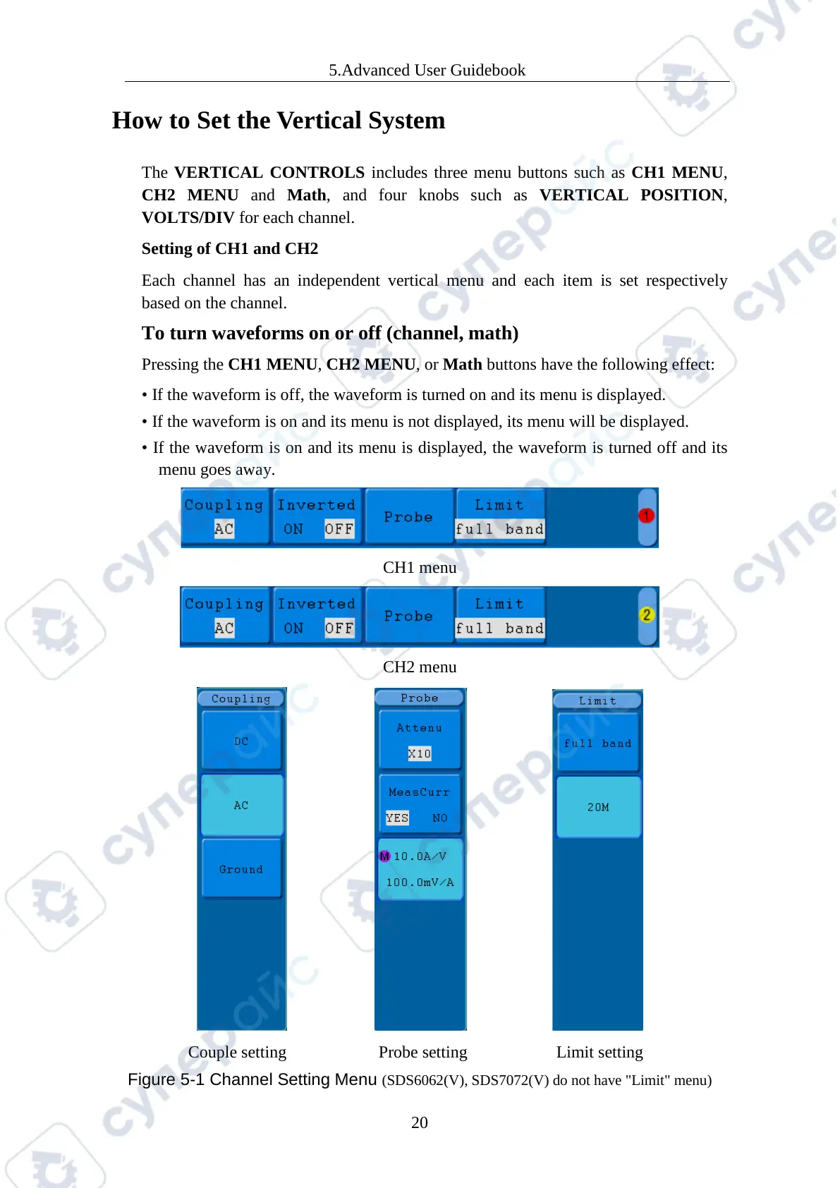 Figure 5-1 Channel Setting Menu (SDS6062(V), SDS7072(V) do not have "Limit" menu)