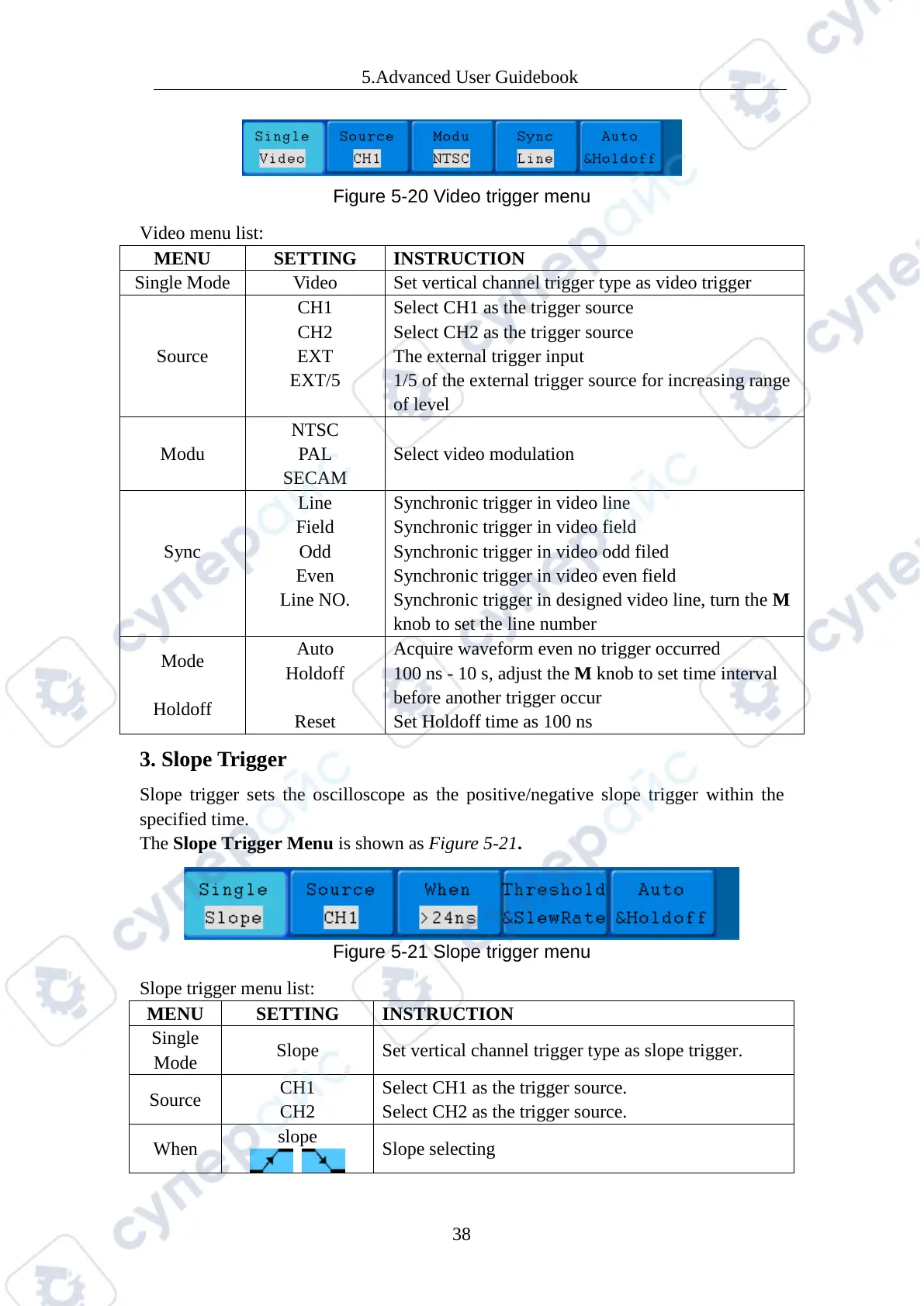 The Slope Trigger Menu is shown as Figure 5-21.