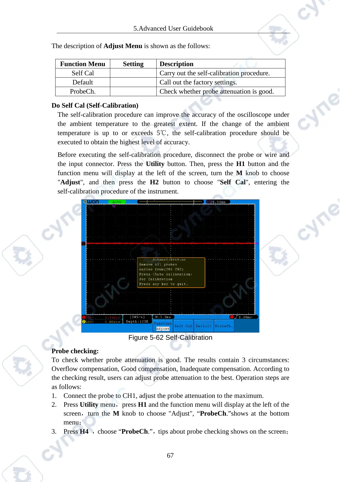 screen,turn the M knob to choose "Adjust", “ProbeCh.”shows at the bottom