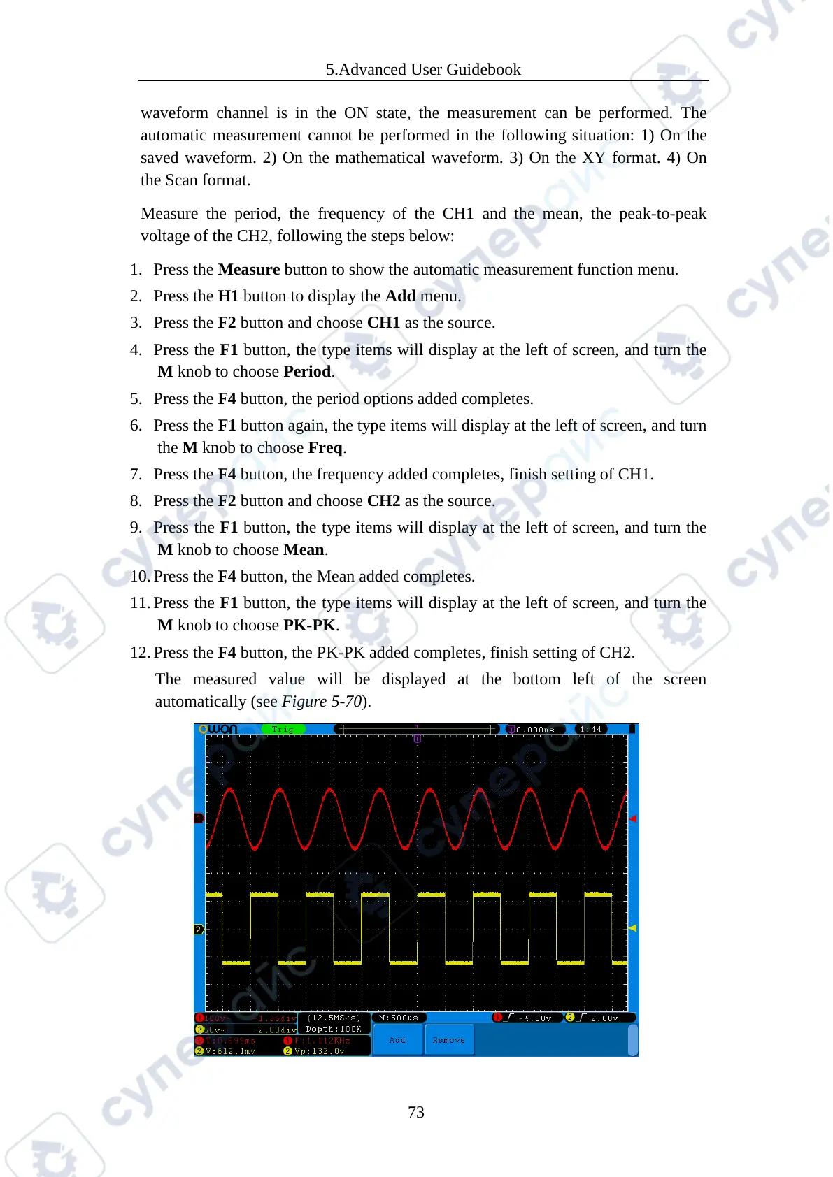 12. Press the F4 button, the PK-PK added completes, finish setting of CH2.