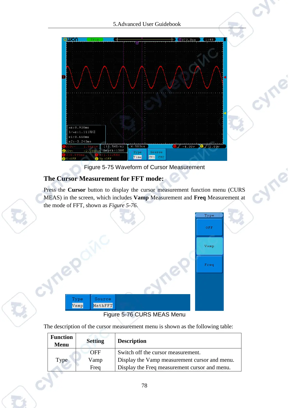 The description of the cursor measurement menu is shown as the following table: