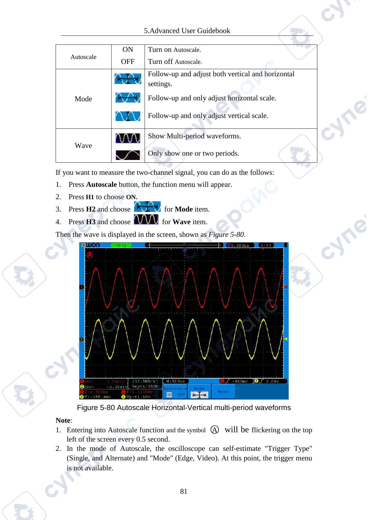 1. Entering into Autoscale function and the symbol