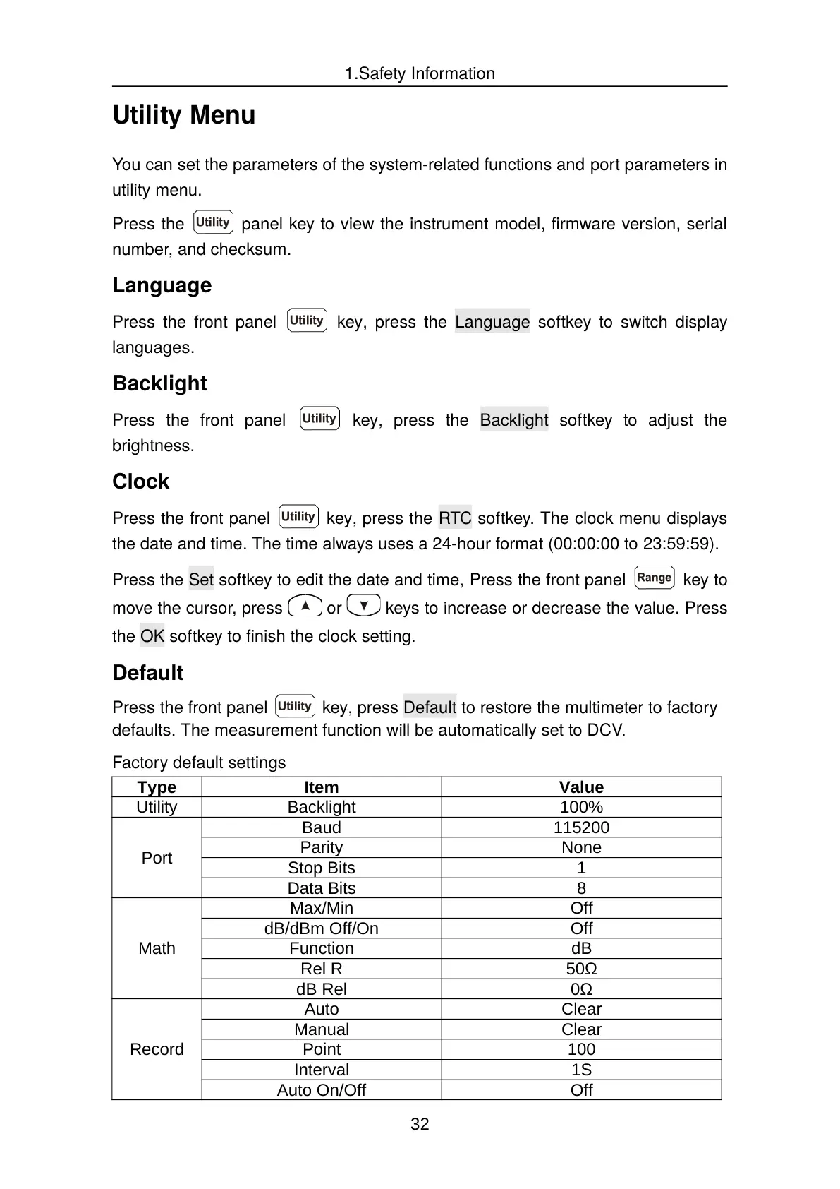 Press the front panel key, press Default to restore the multimeter to factory