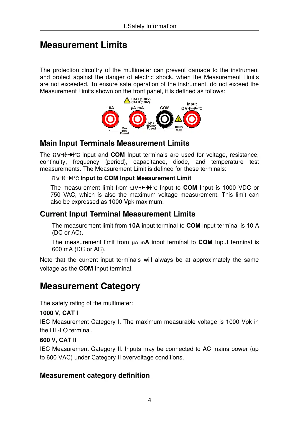 Main Input Terminals Measurement Limits