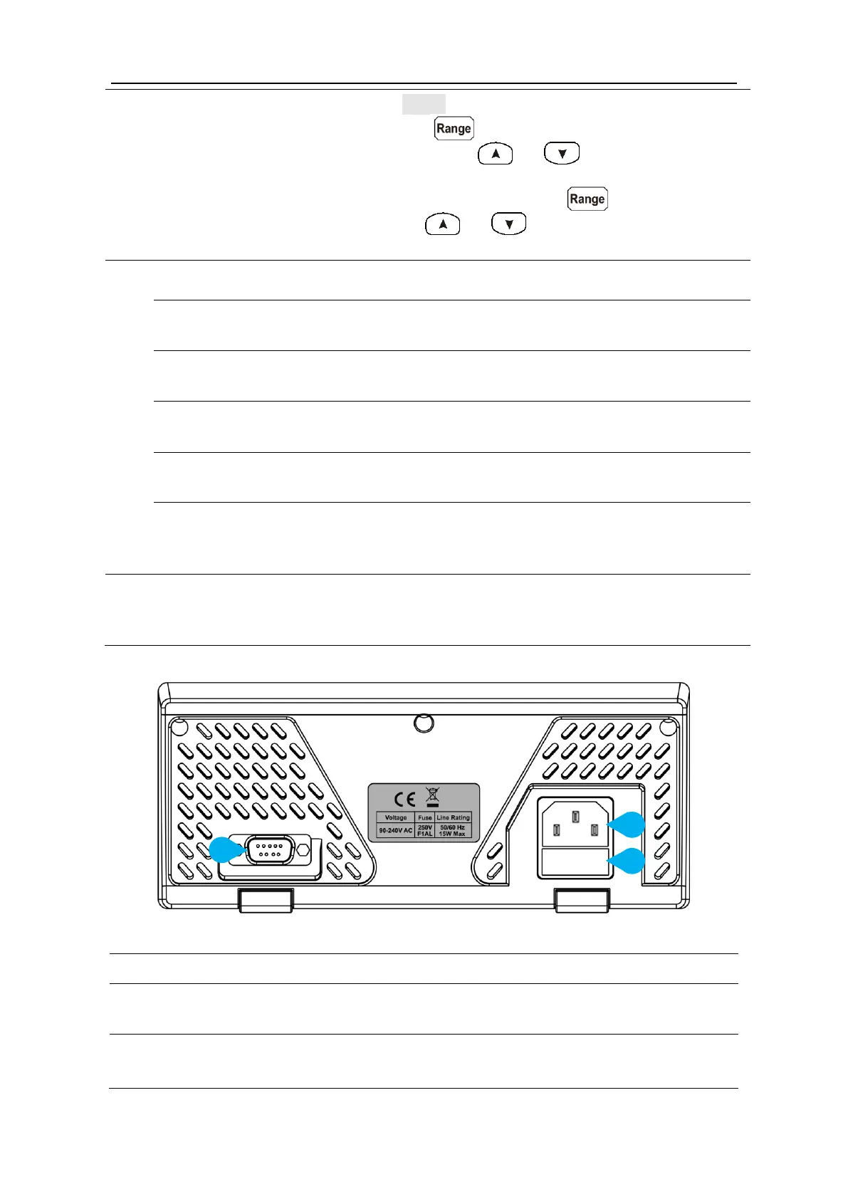 manual range. Press or keys to enable manual