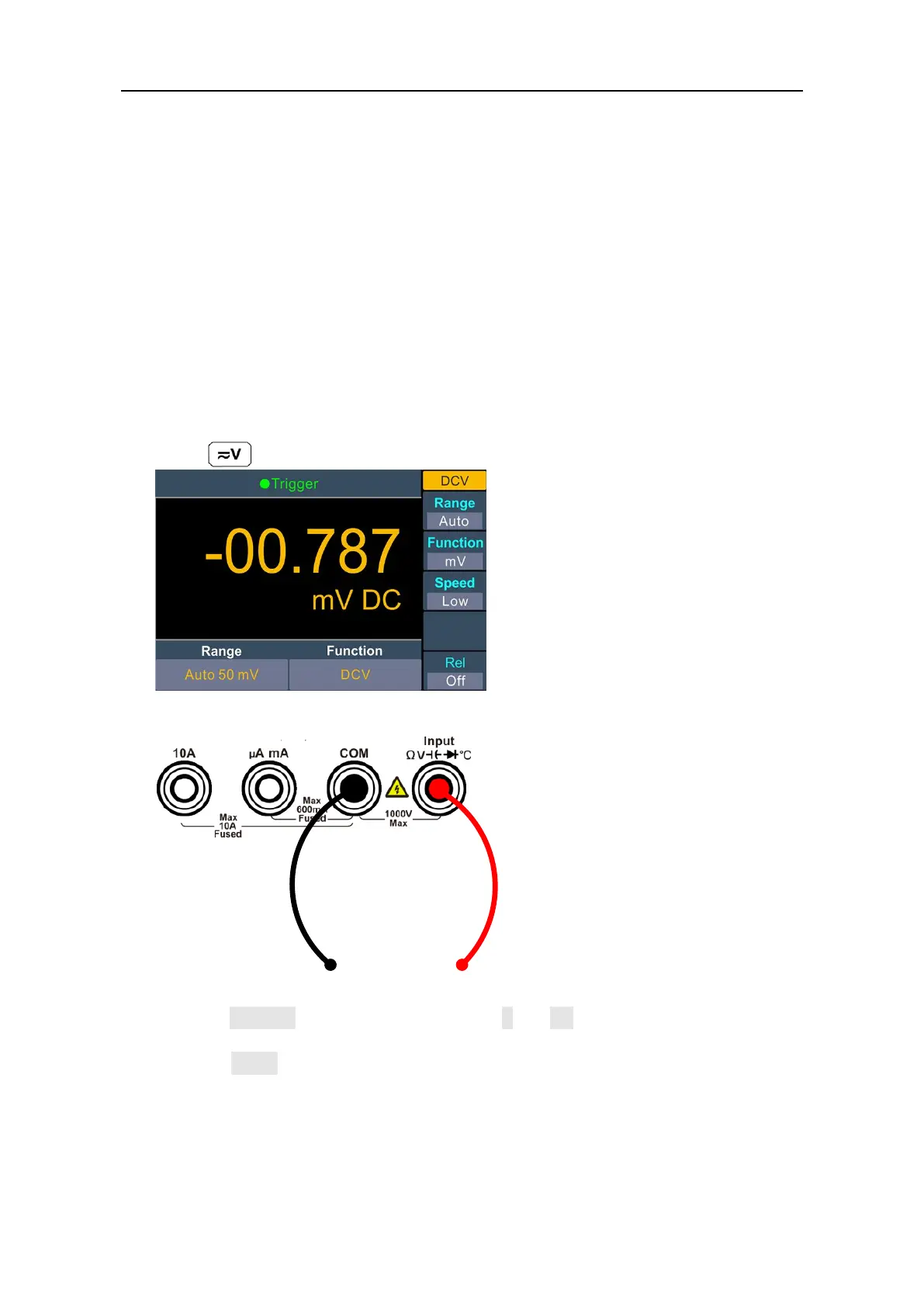 Press on the front panel to enter DCV measurement mode.