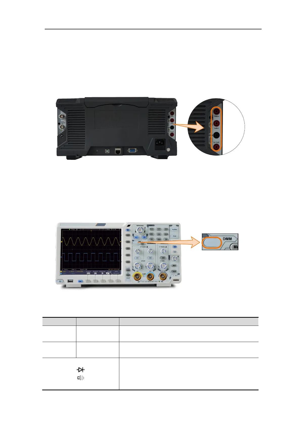 Push DMM button on the front panel to enter/exit the multimeter function. The button