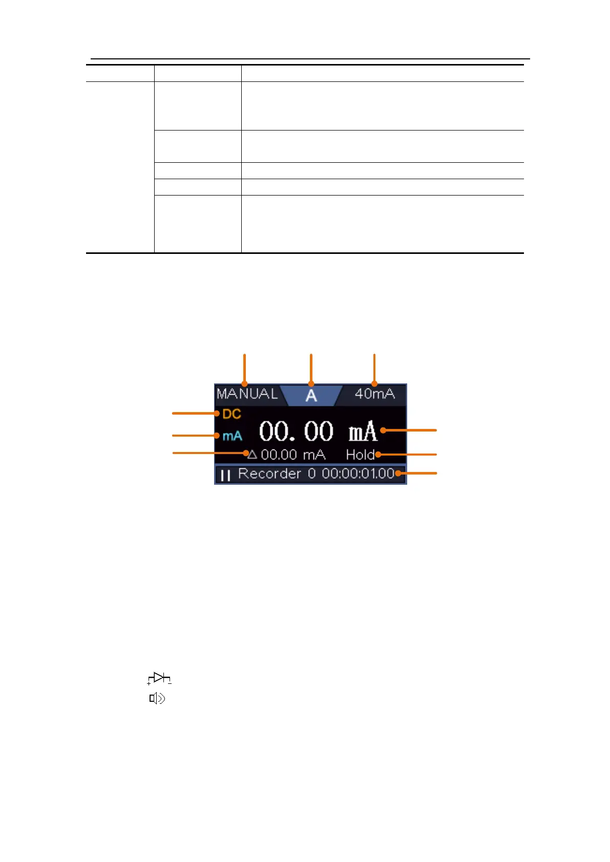 1. Manual/Auto range indicators, MANUAL refers to the measuring range in manual