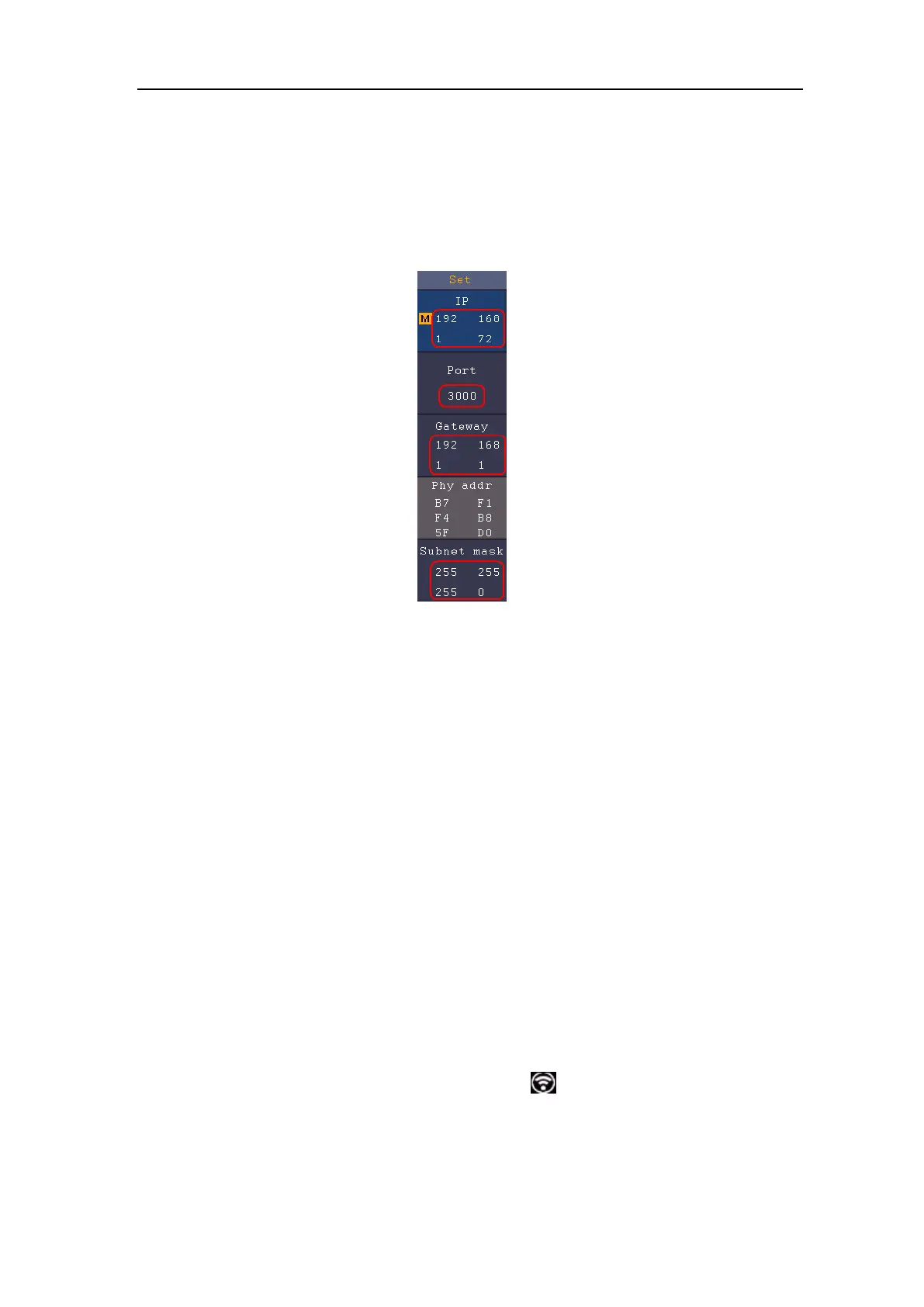 edited. Here IP is 192.168.1.1. Turn the M knob to set the PORT. Here, we set it to