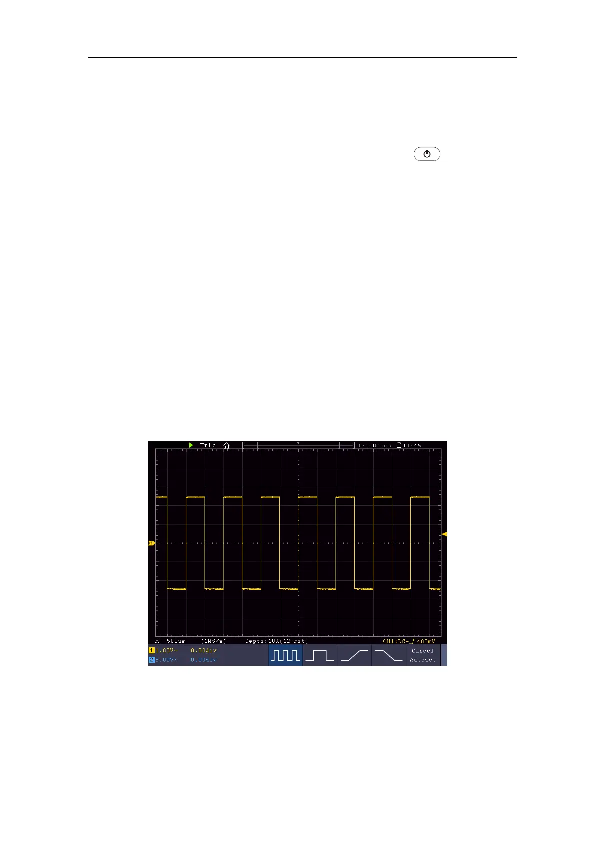 The square wave of 1 KHz frequency and 5V peak-peak value will be displayed in