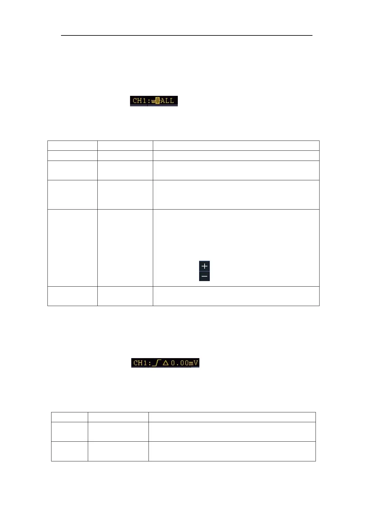 trigger source is CH1, slope is rising, 0.00mV is the differential between up level and