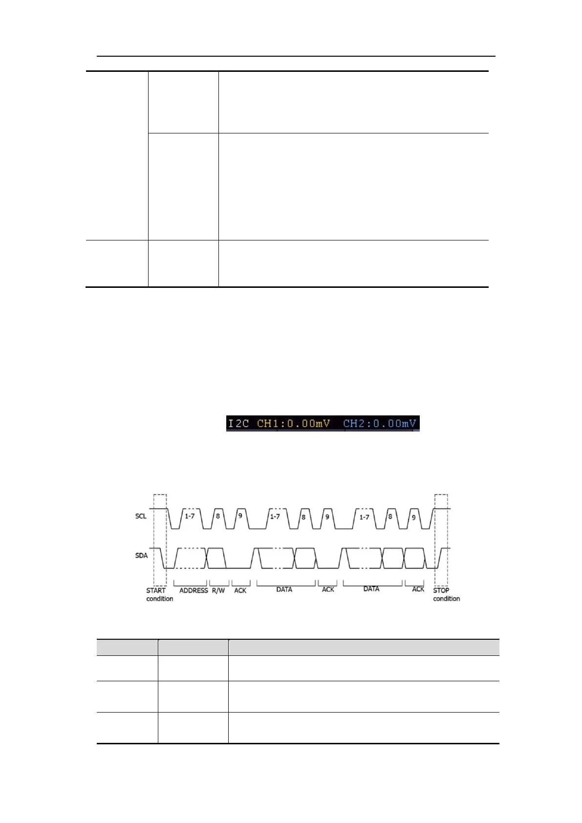 I2C Trigger menu list:
