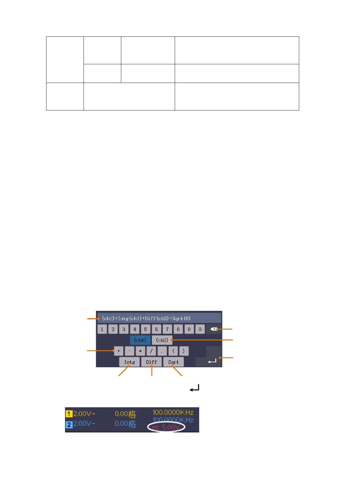 1. Press the Math button to display the math menu in the bottom. The pink M waveform