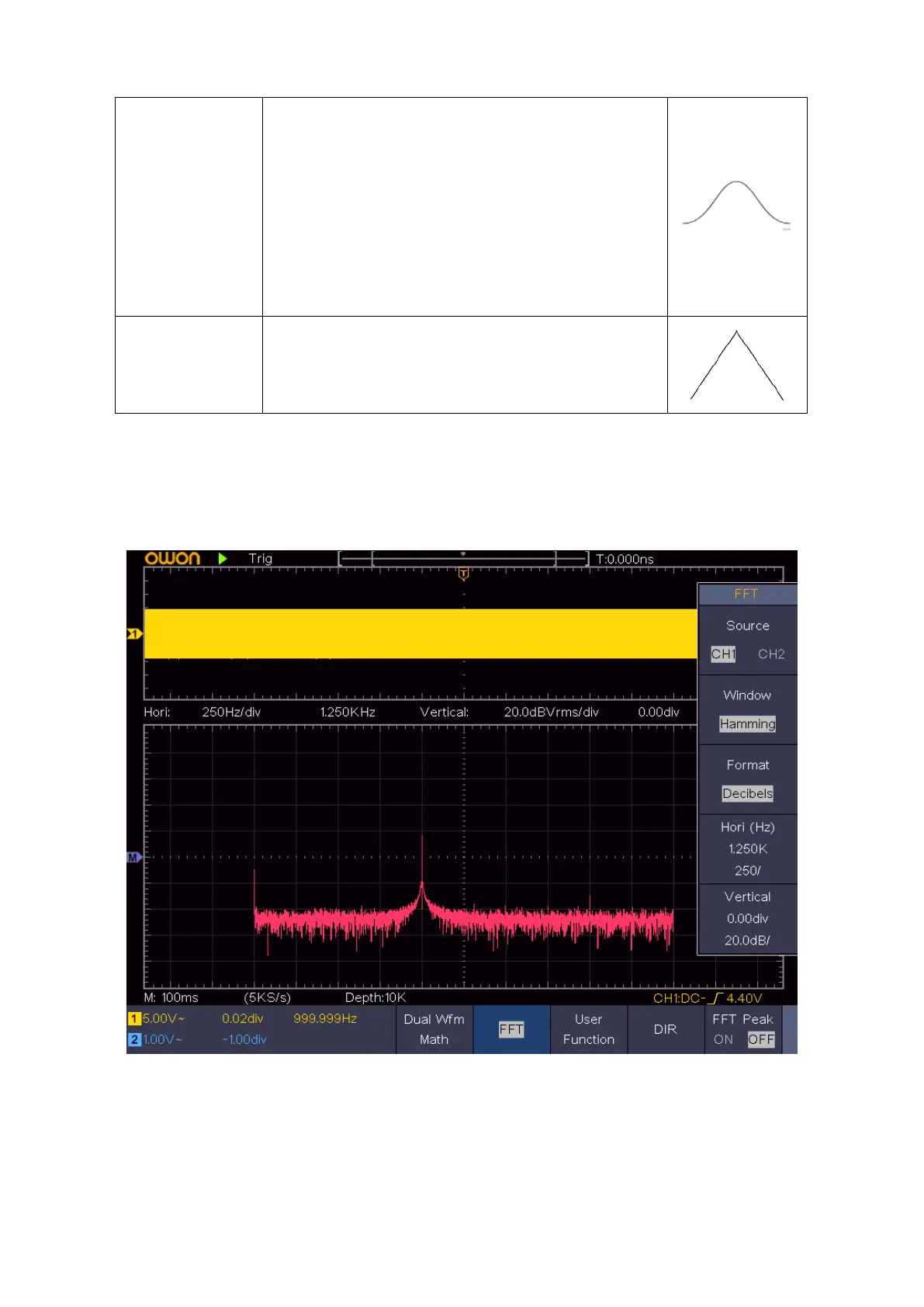 measuring sine wave with a frequency of 1kHz under the selection of six different