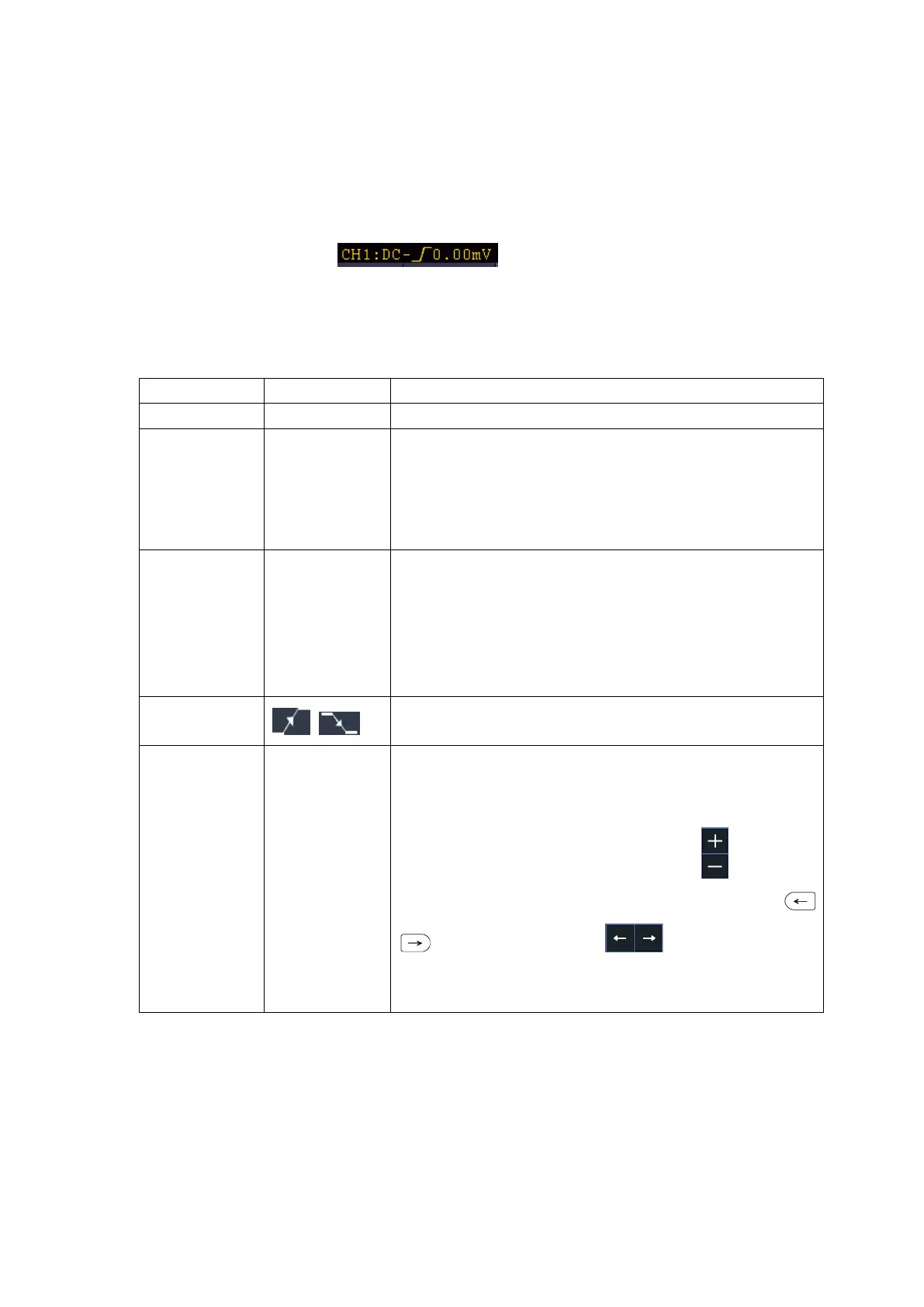 level knob or slide on the touch screen upward and downward to move trigger level,