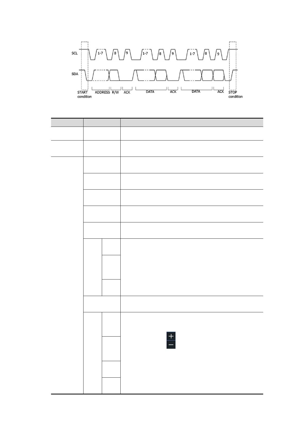 I2C Trigger menu list: