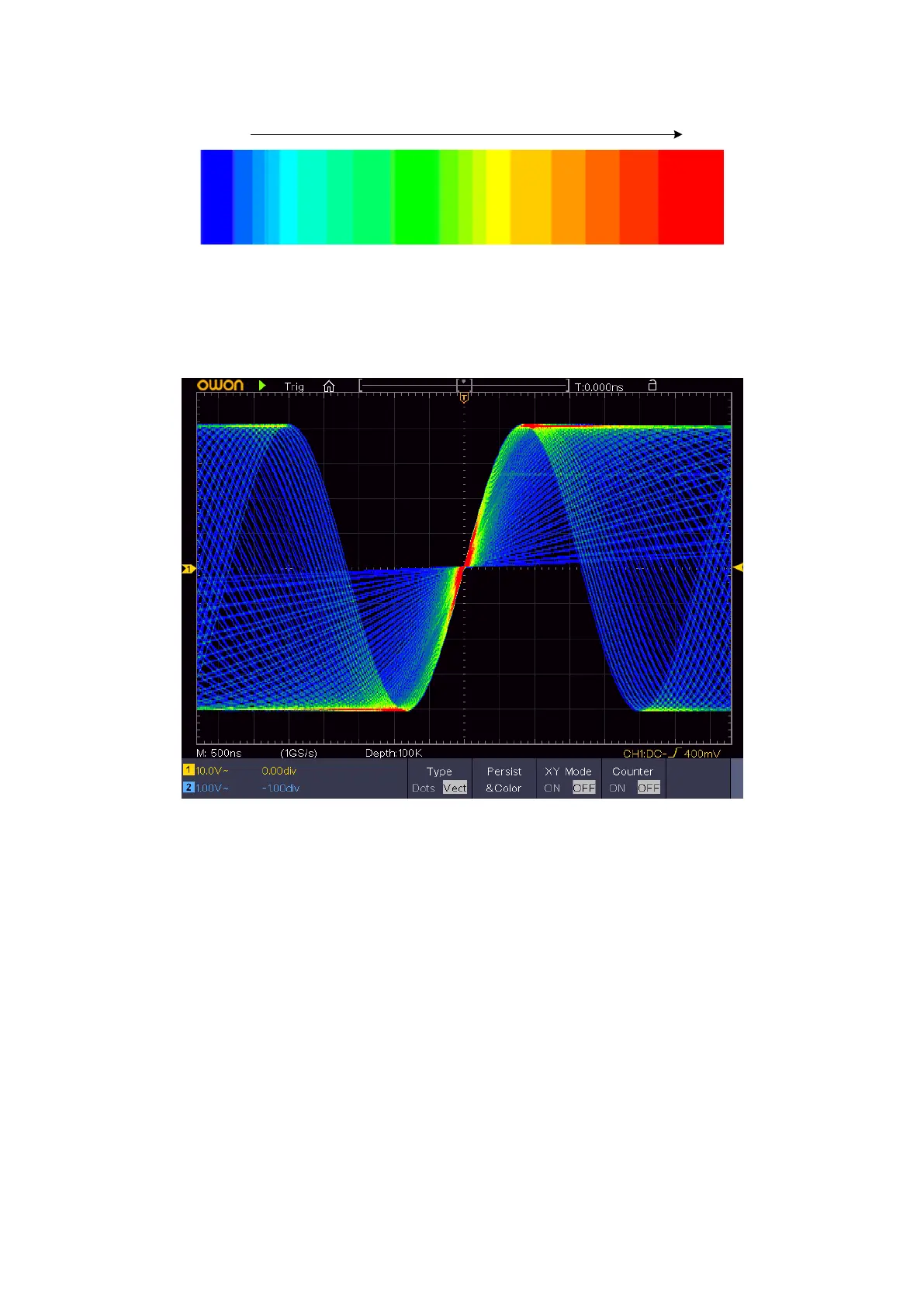 This format is only applicable to Channel 1 and Channel 2. After the XY display