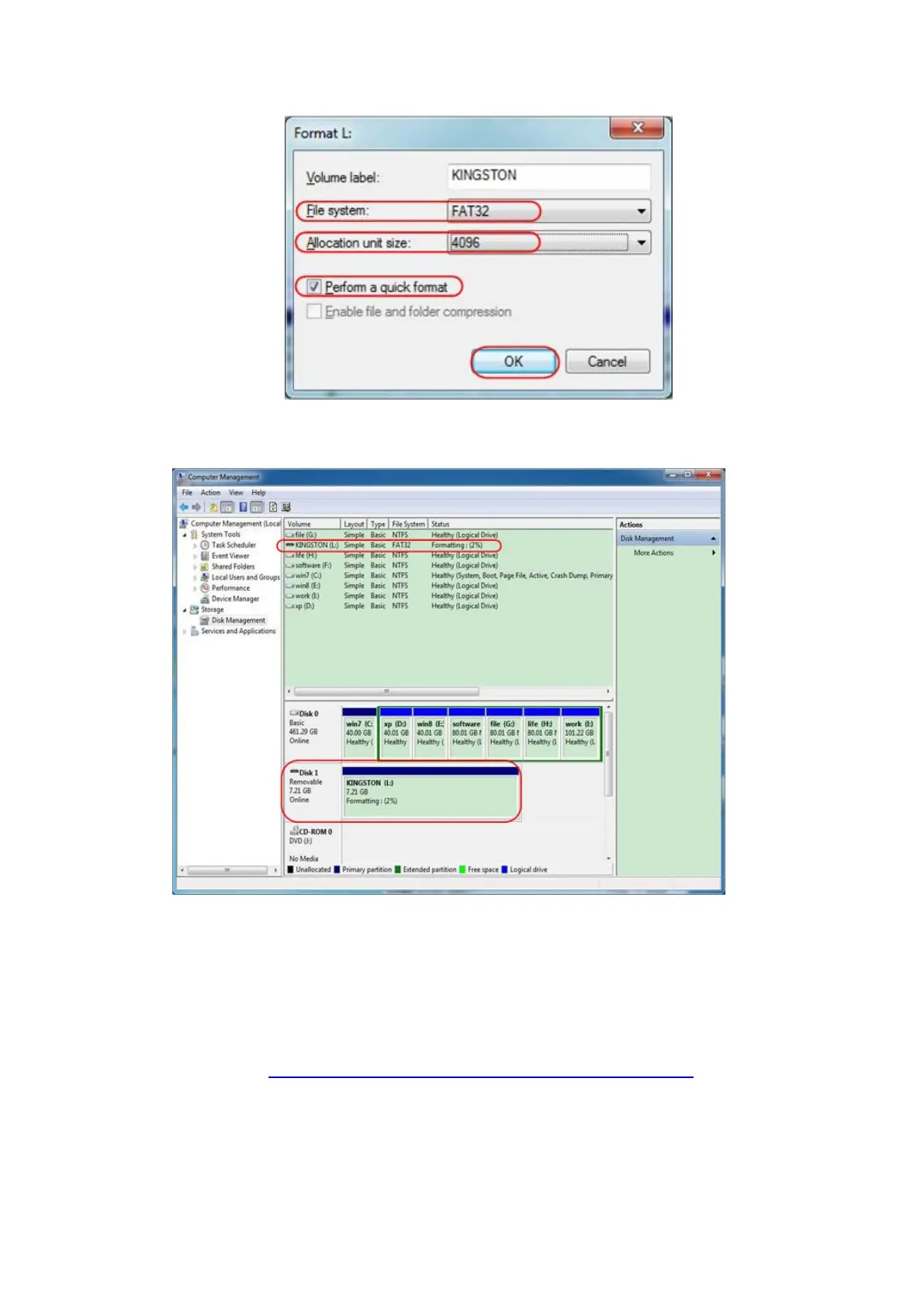 7. Check whether the USB disk is FAT32 with allocation unit size 4096 after