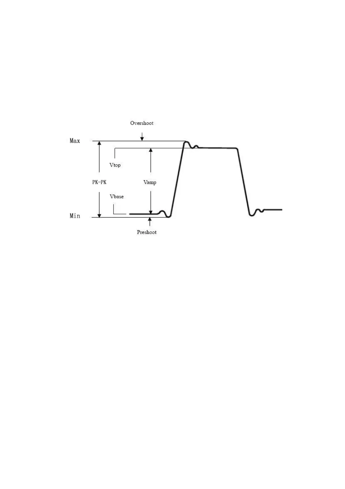 PreShoot: Defined as (Vmin-Vbase)/Vamp, useful for square and pulse