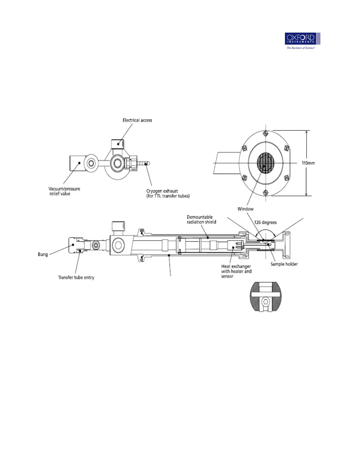 Up to two windows can be fitted to the MicrostatHe. Each window is permanently bonded into the OVC flange, which is shaped to allow