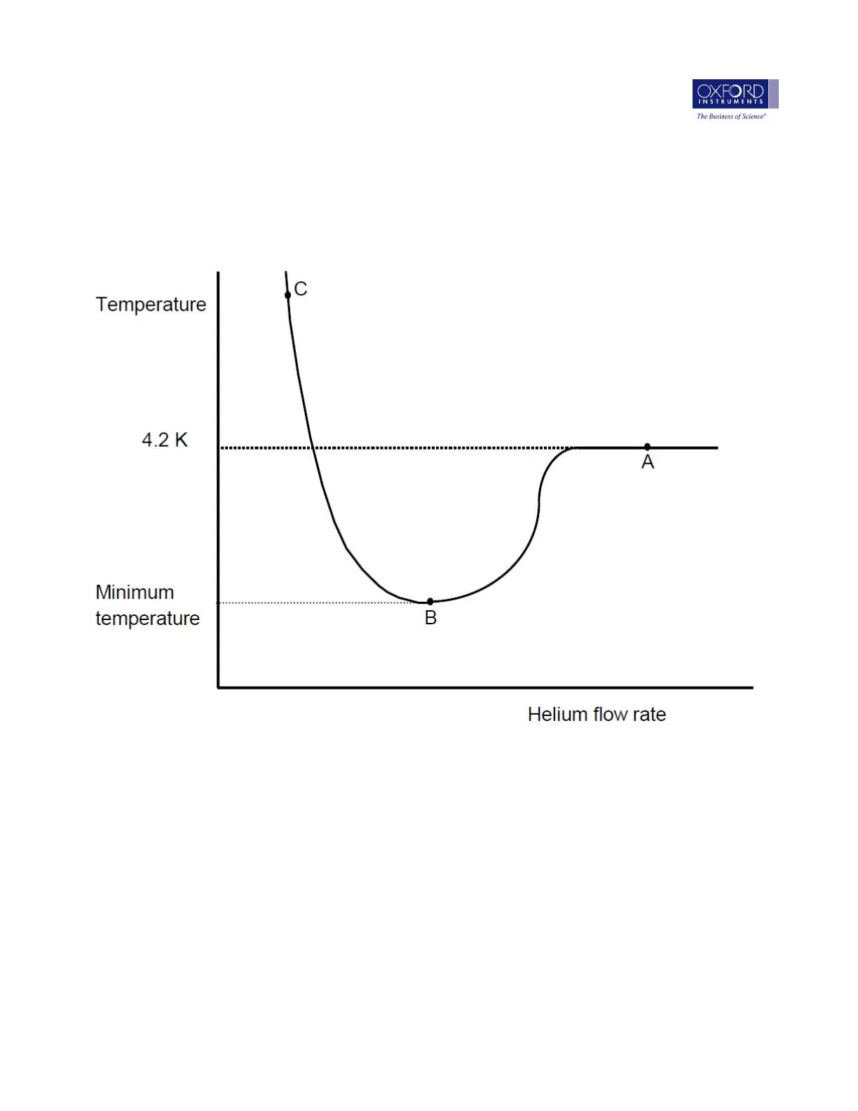At this point, open the needle valve about a quarter turn. The temperature should stabilise below about 20K (point C). Now open the