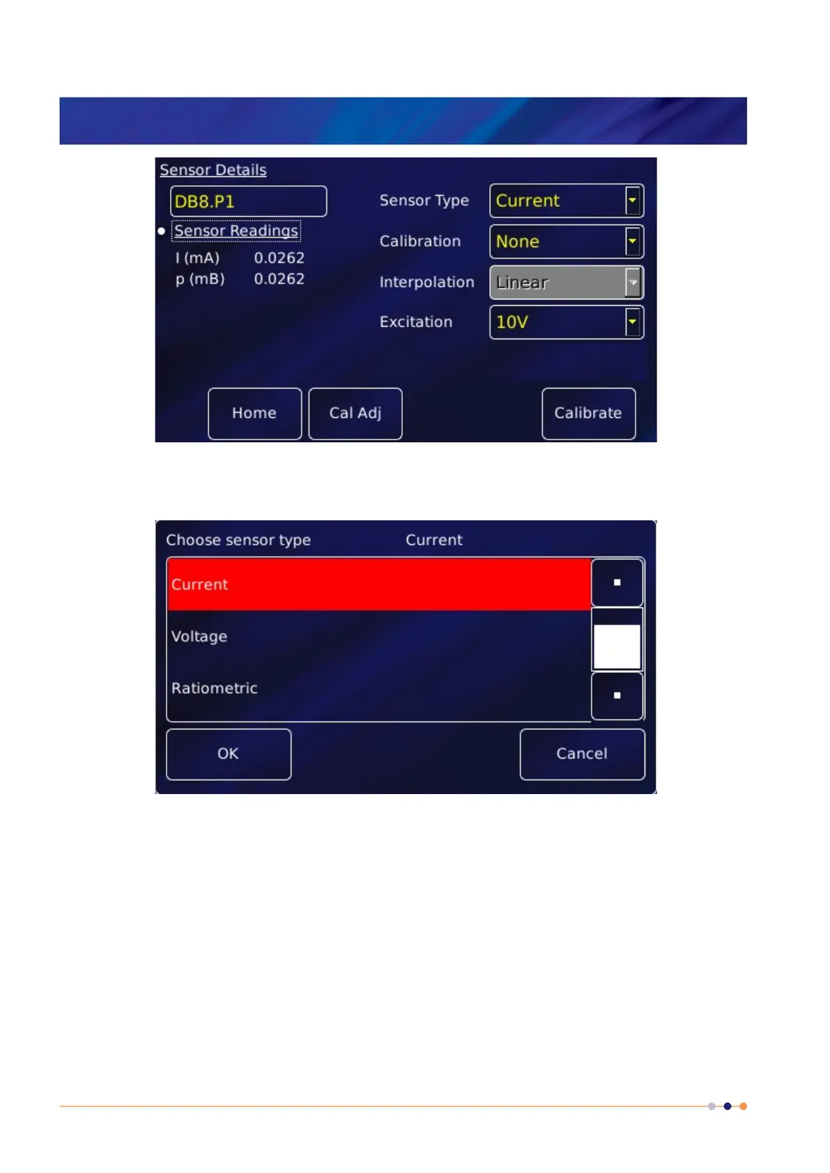 2 Tap the Sensor Type parameter box and select a sensor type from the drop-down menu, as
