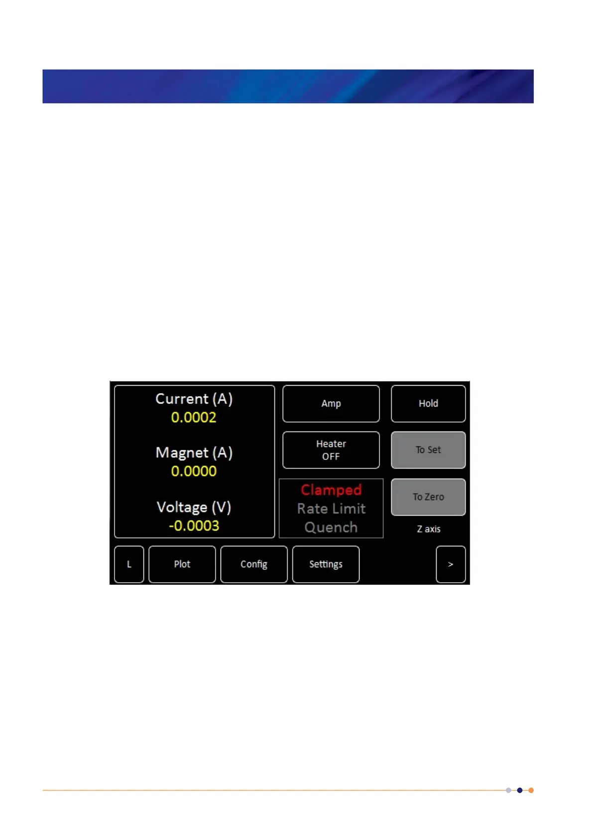 Magnet status information panel showing the power supply output current (or equivalent field