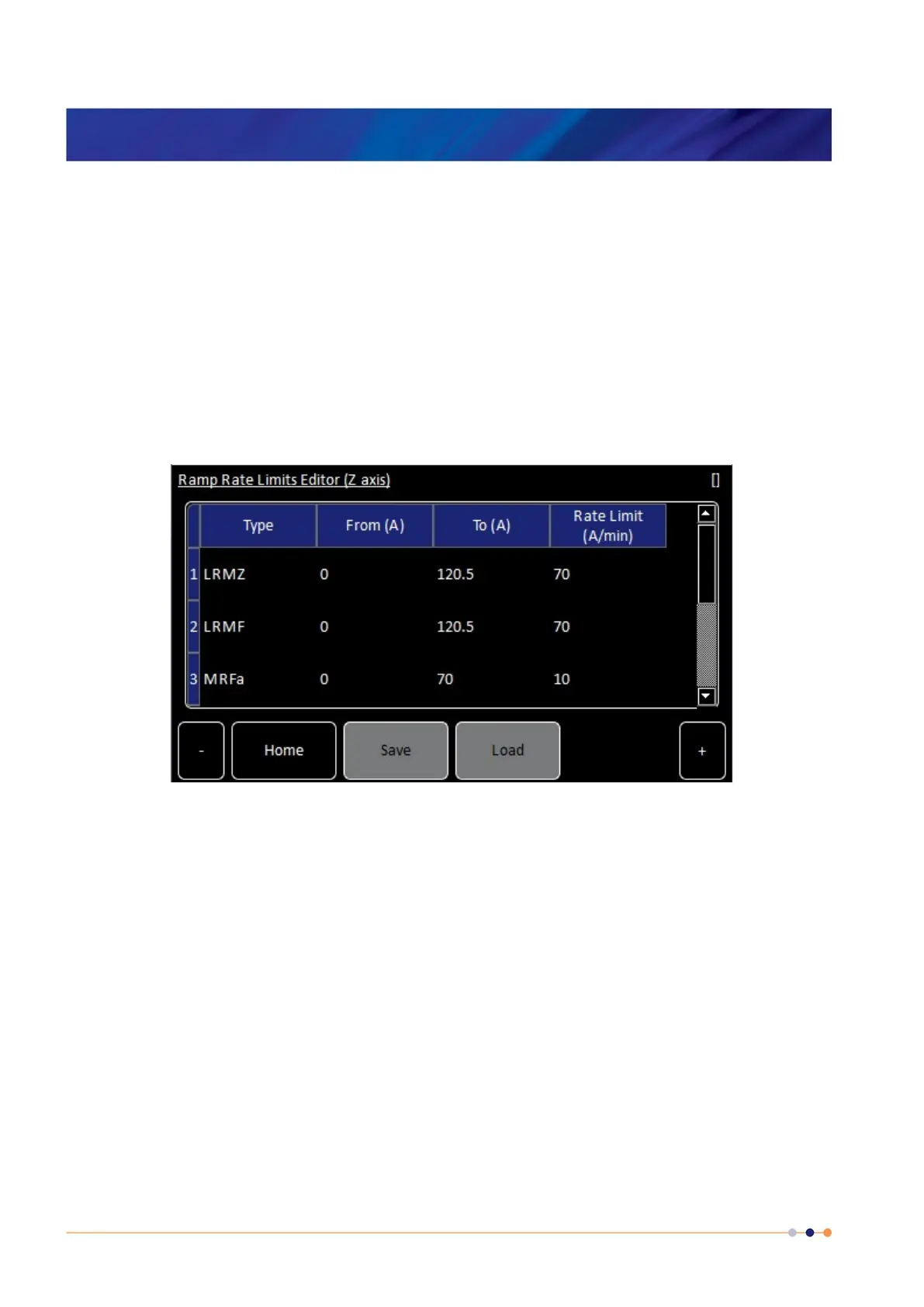 applied. Column 3, “To (A)” specifies the upper current at which the limit will be applied.