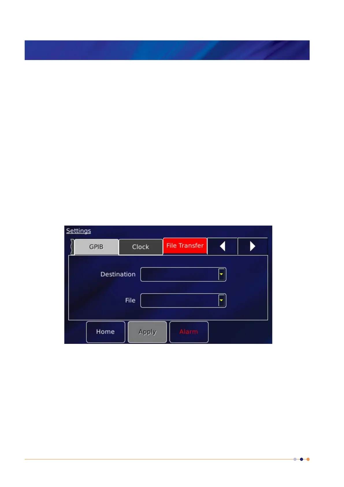 Select File Transfer to view a page used to load calibration files into the controller from a USB