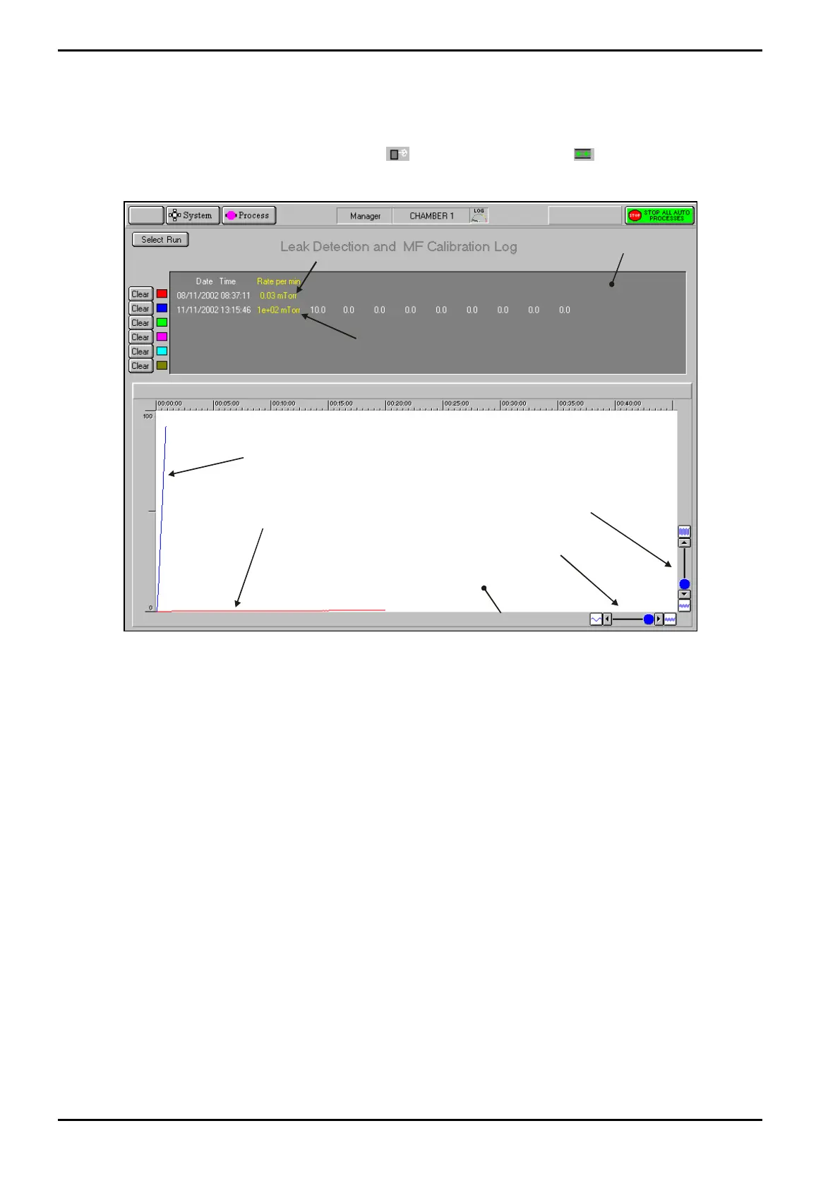 Fig 5-8: Typical leak detection and MFC calibration log page