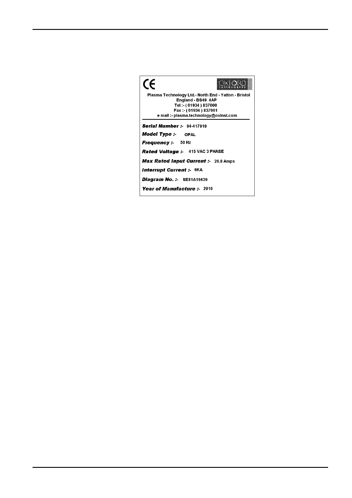 by a label attached to the rear of the power box. An image of this label is shown below: