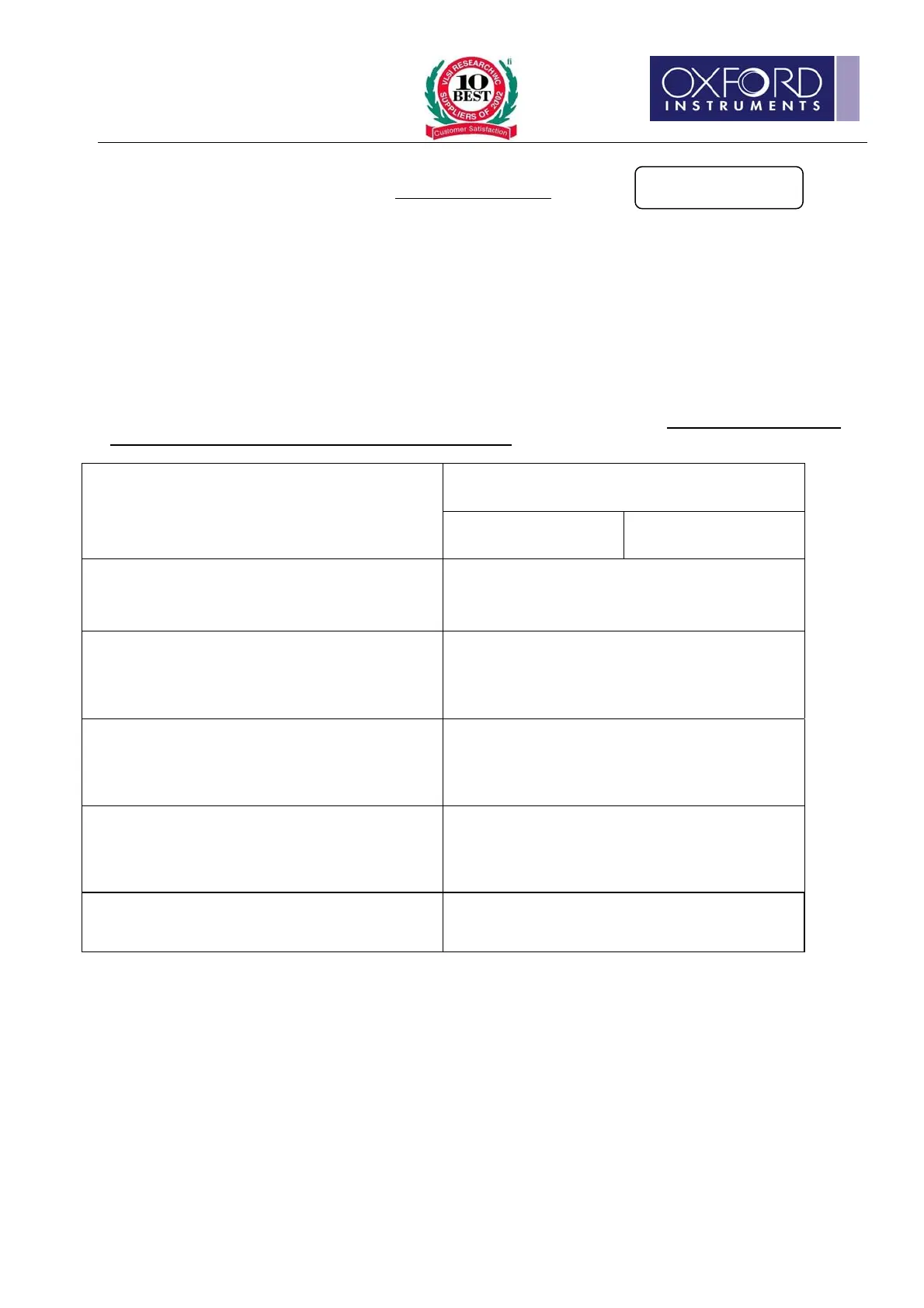 • This form must be completed and a copy sent to Oxford Plasma Technology Service Department by fax or
