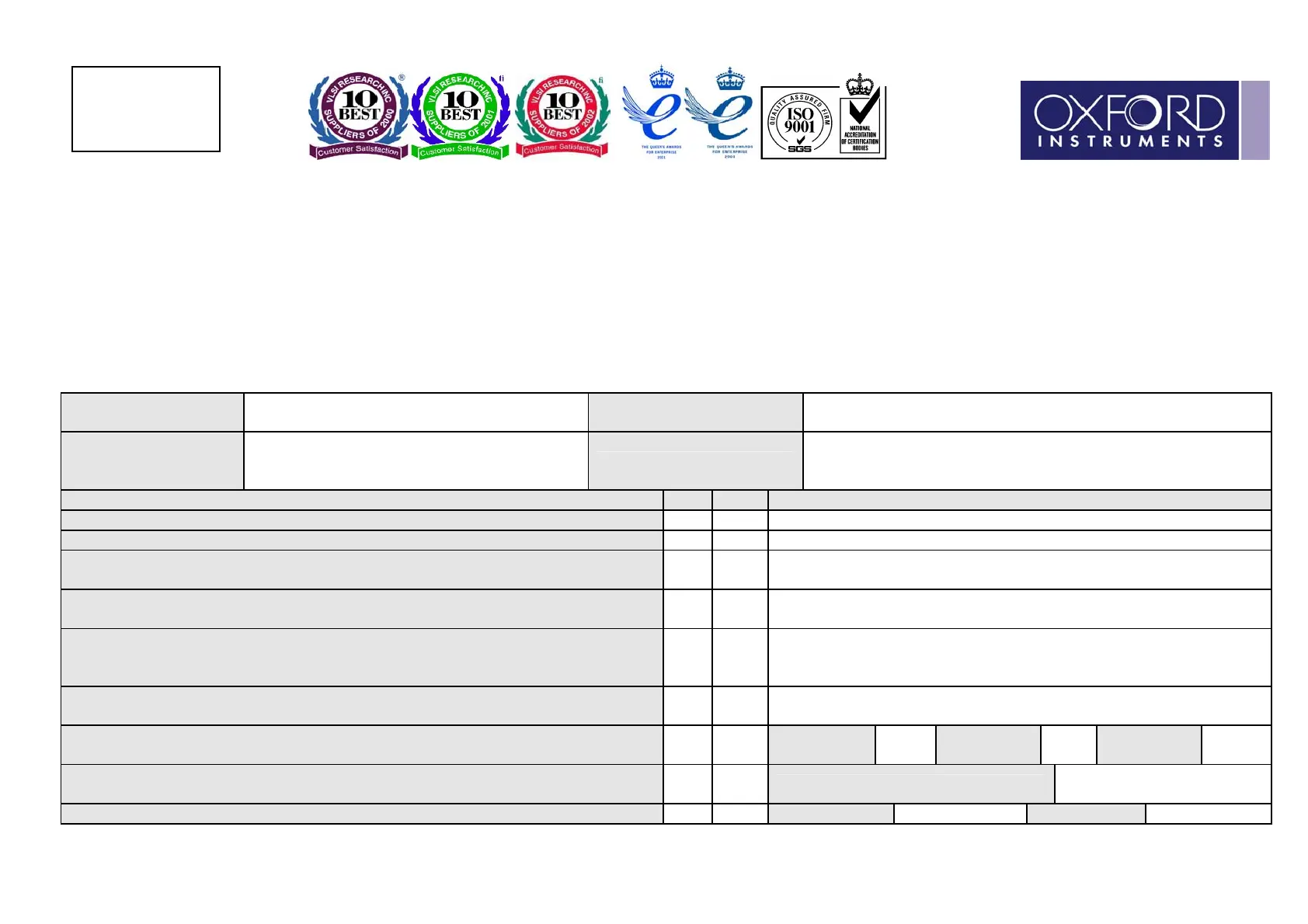 low and the form returned to your supporting Oxford Instruments office. Returning this form