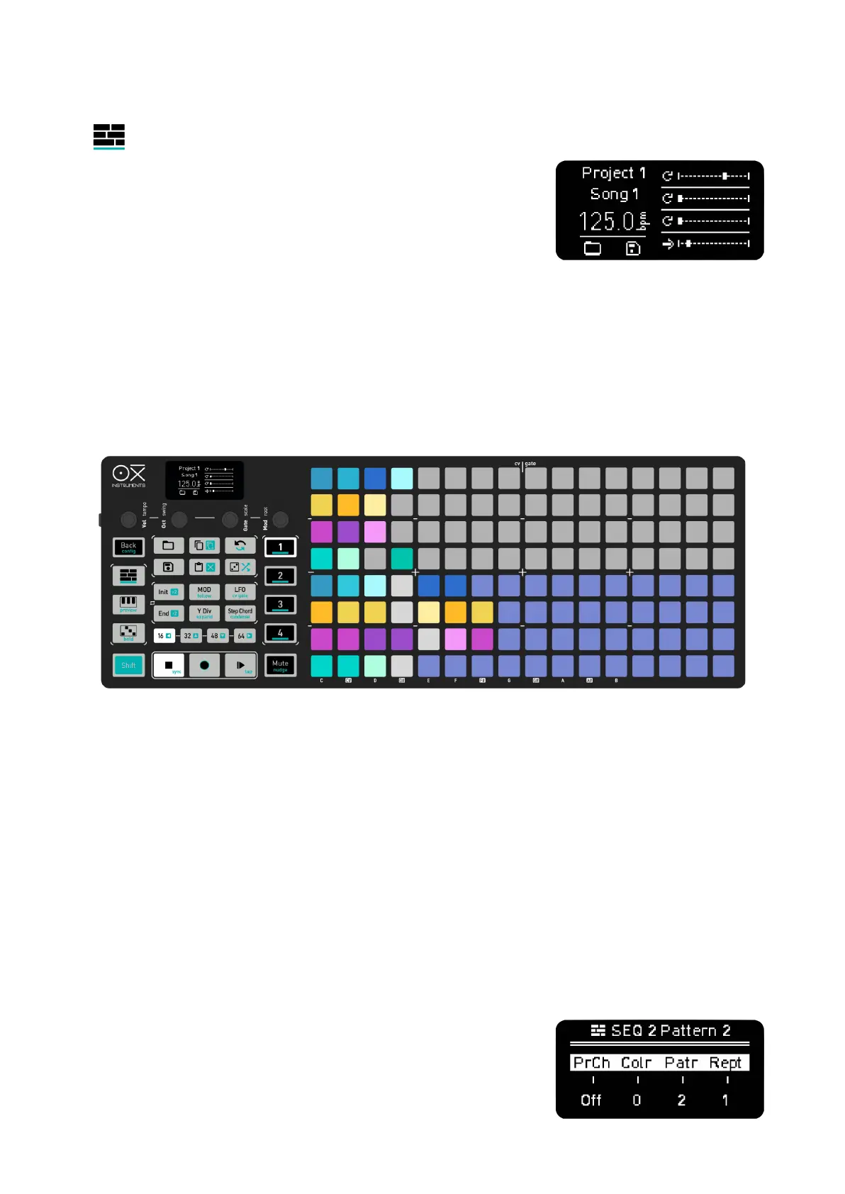 The bottom 4 rows of the grid are a 16 position sequence for each Sequencer respectively, so you