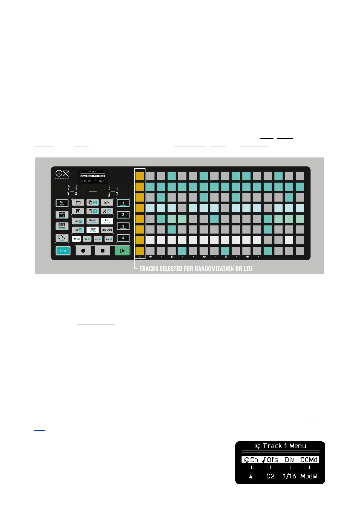 and orange respectively, this indicates which tracks are affected by Randomization and LFO