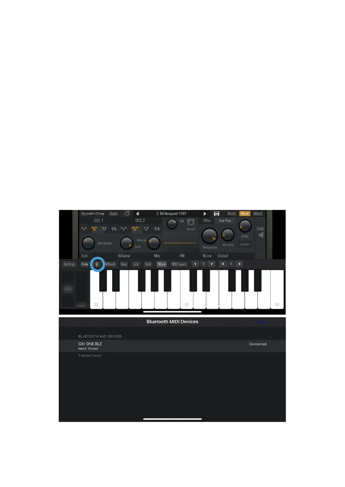The connection has to be established from MIDI and Bluetooth settings of the app itself.