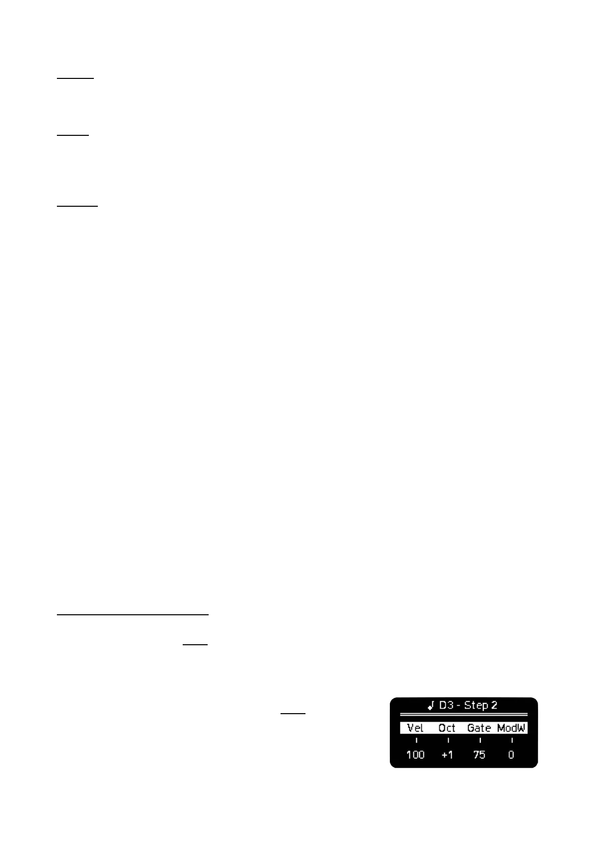 global parameters, use the encoders, adjusting the Velocity, Octave, Gate and Mod; Swing, Scale
