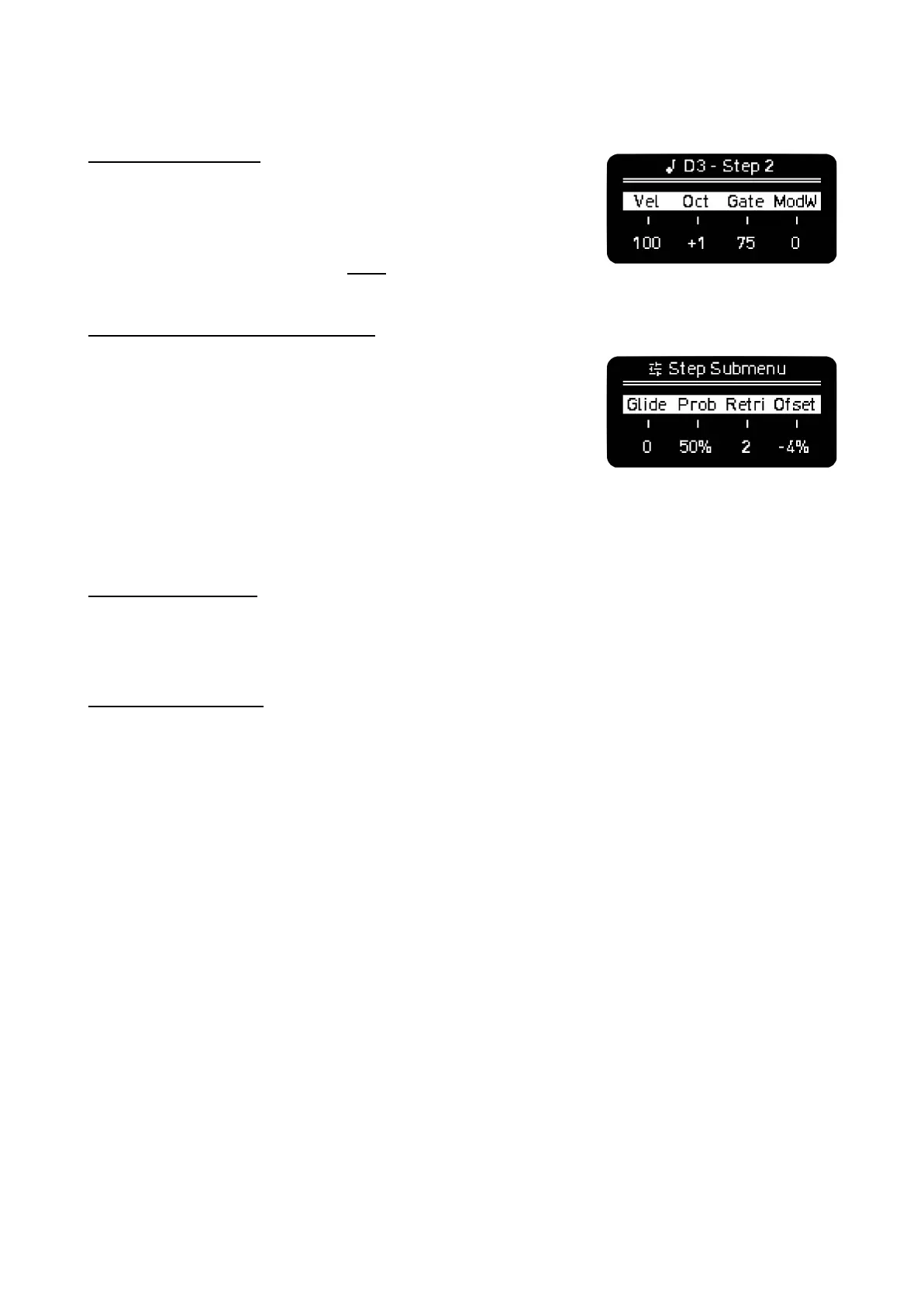 Turning the second encoder CCW lowers the probability of the step triggered notes.