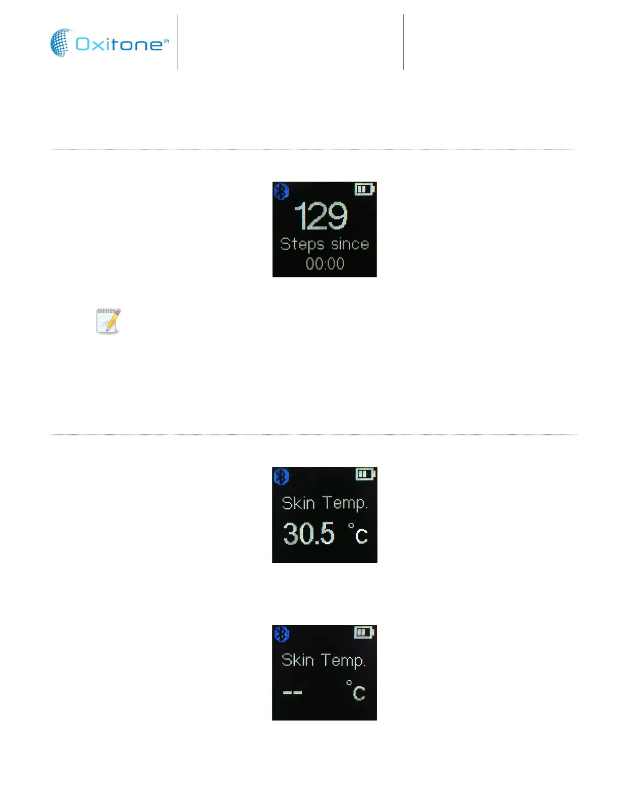 While viewing the Steps screen, tap briefly on the button to display the Skin Temperature screen: