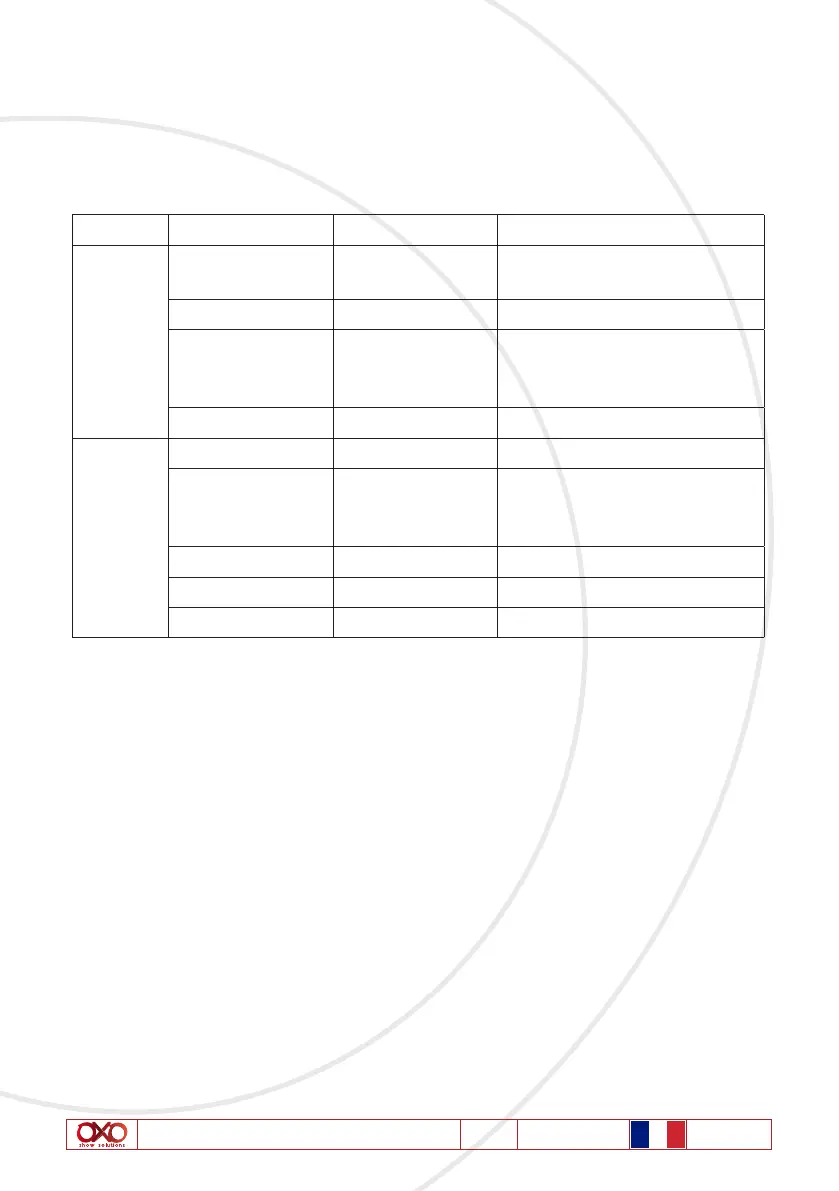 mode programme et via DMX en mode réception DMX, en 07, 08, 10, 11 ou 16 canaux.