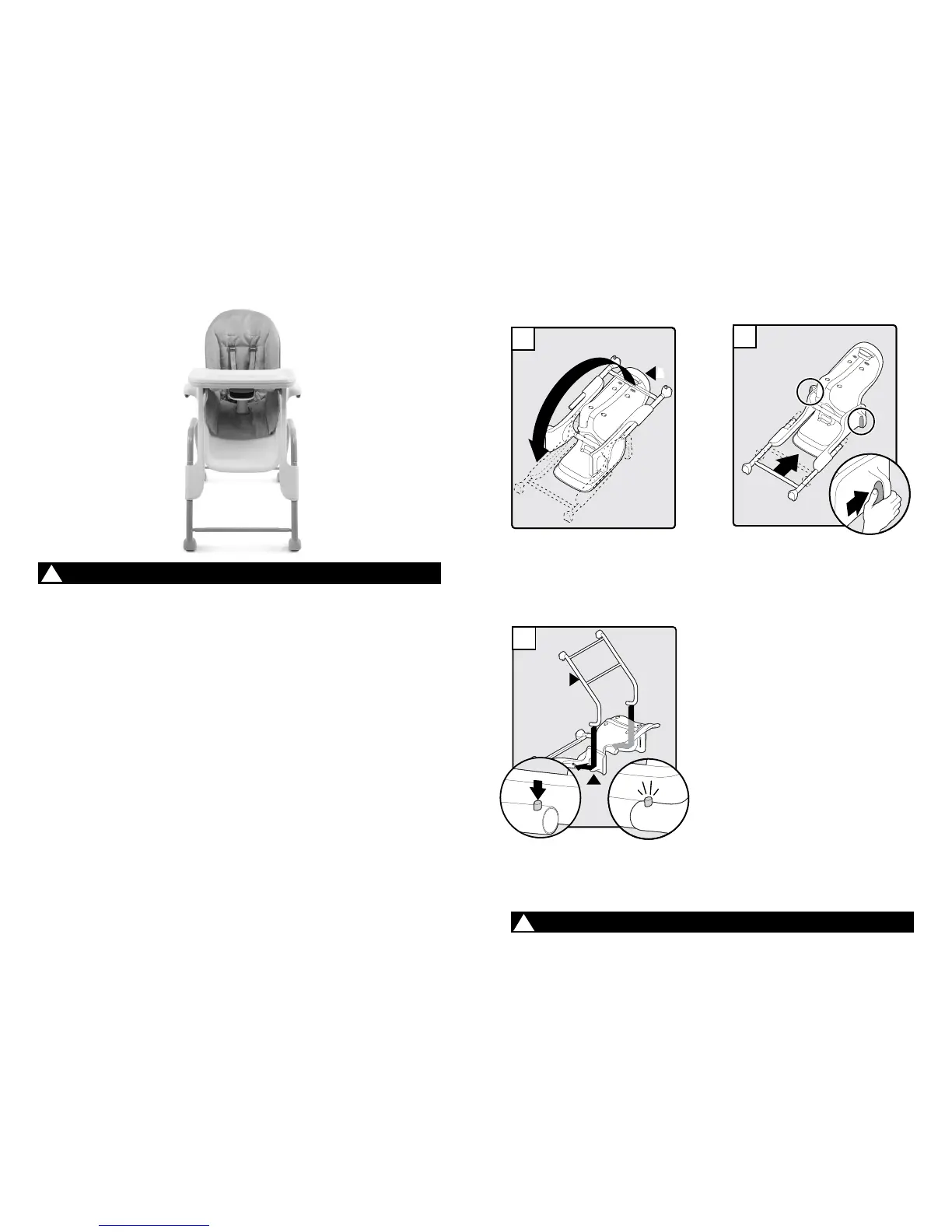 • Do not use High Chair unless all components are correctly fitted and adjusted.