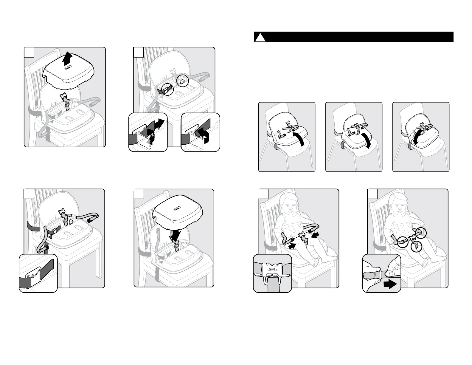 of the Booster Seat on the adult chair prior to first use. If the Booster Seat moves forward and backward or