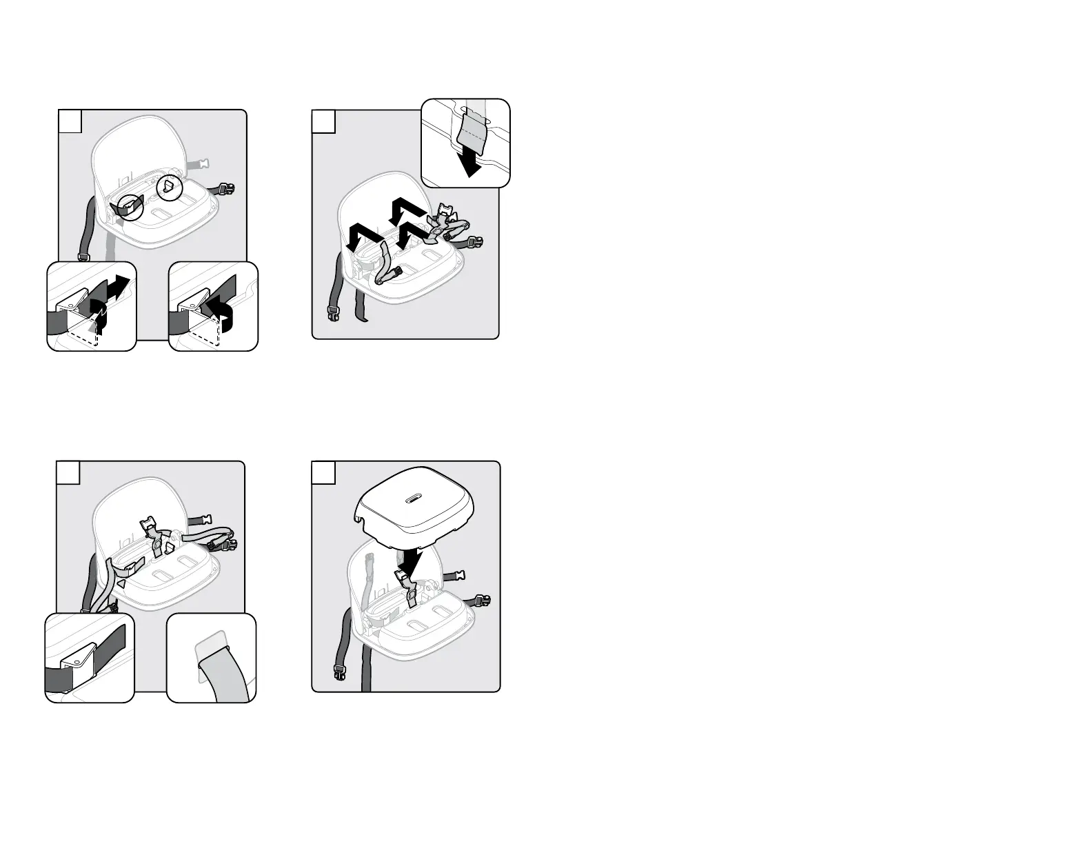 Pull straps to tighten. Secure loose end of straps by
