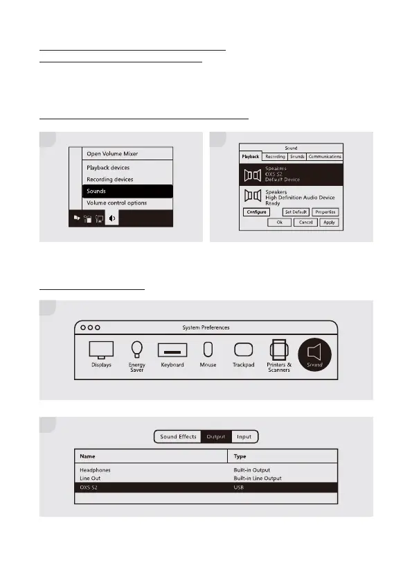 OXS S2 - Configurar el Altavoz como el Dispositivo ESP-9; Para Usuarios con MAC ESP-9; Para Usuarios de Computadoras con Windows ESP-9; Predeterminado con Entrada USB-CESP-9