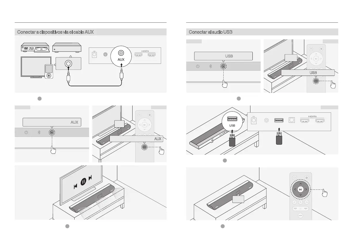 Conecte los dispositivos y soundbar utilizando el cable AUX.1