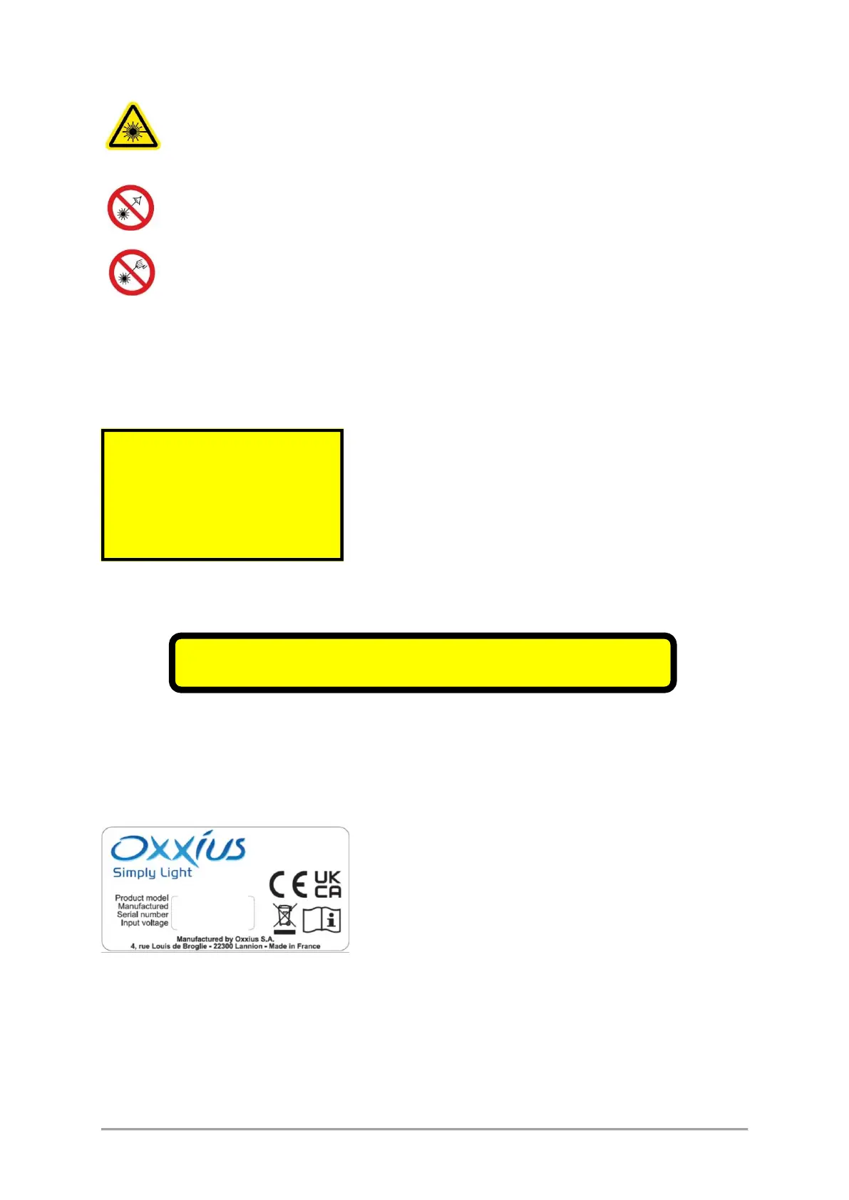 This pictogram urges the user to avoid any incidence of the beam over his or her unprotected