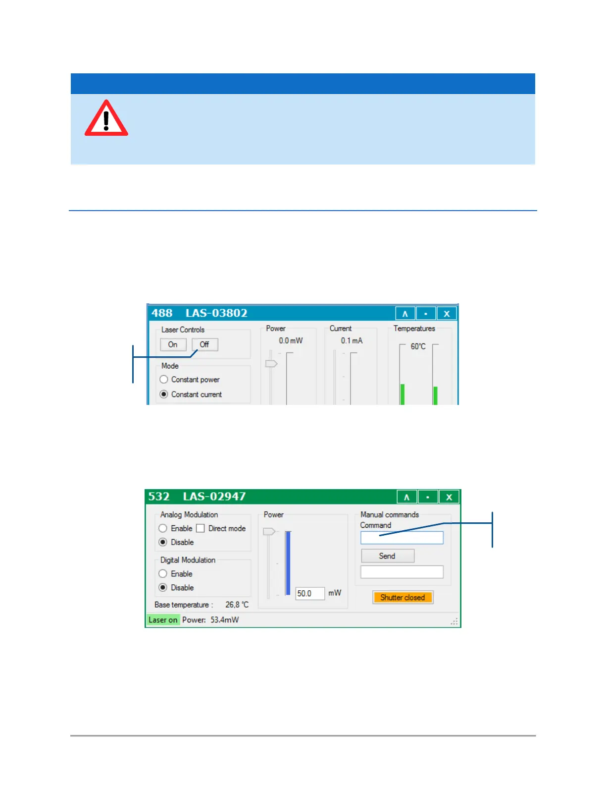 software, open the control window of the laser you wish to turn off, then proceed as follows: