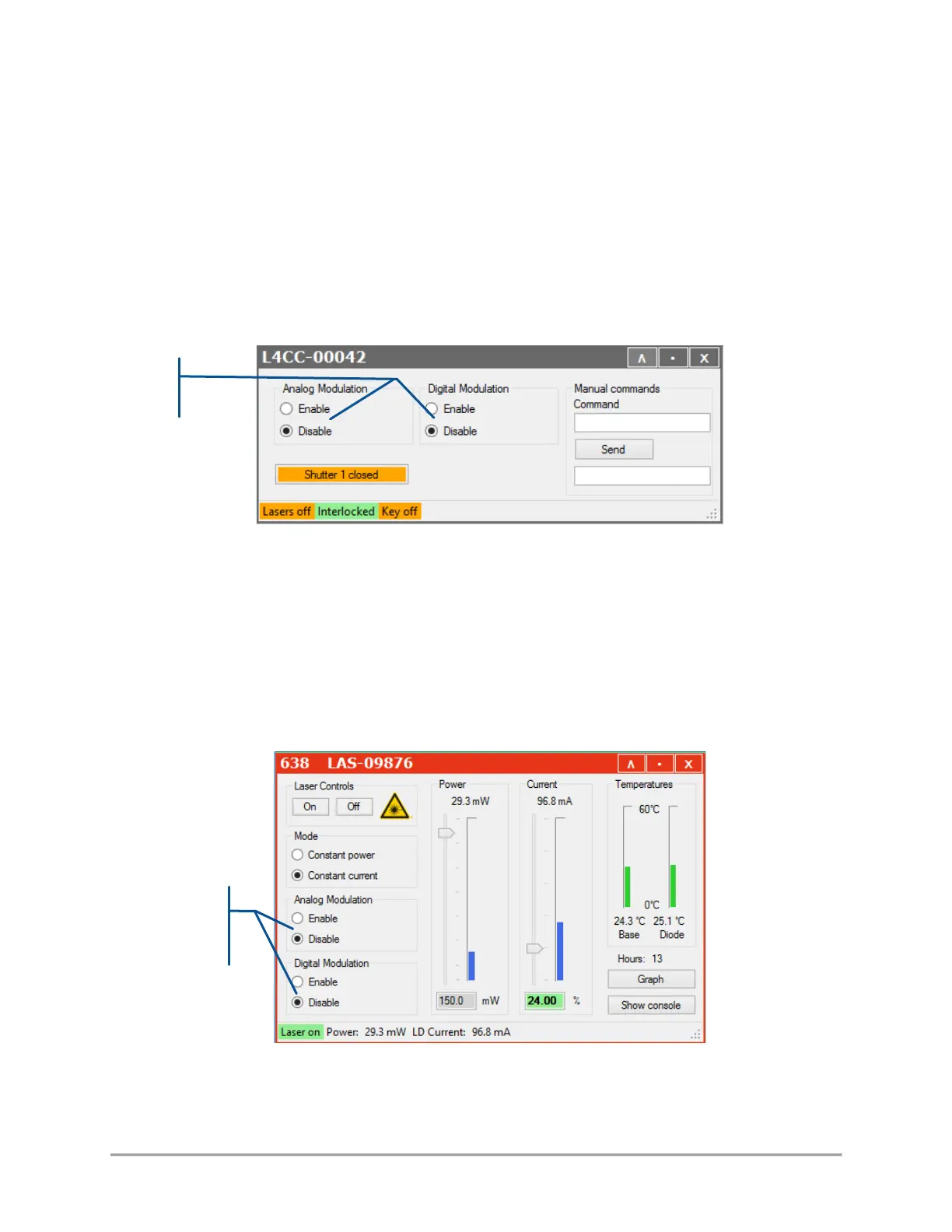 modulation, or both. These settings will be cascaded down to each laser source.